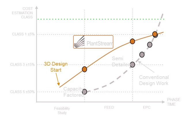 Compared to conventional design tool which require huge effort to create models, with PlantStream, our engineers are able to start in 3D from Day 1. Thanks to its simple UI and preset database, highly accurate estimation work is possible in FS phase. (Class 3 ± 15%)